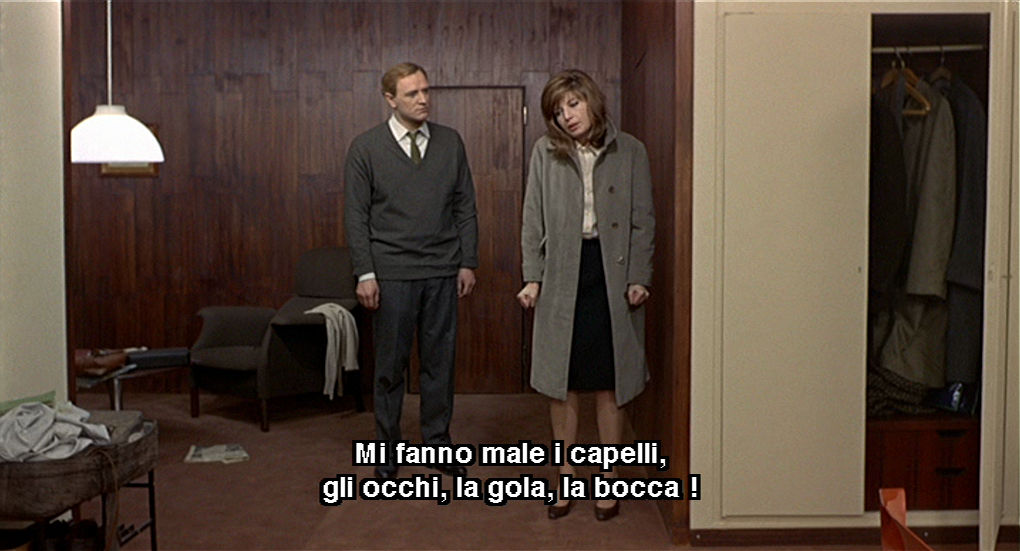 Nemmeno Corrado, con cui Giuliana finisce per tradire il marito, dopo un’intensa relazione fatta di sguardi e cenni d’intesa, riesce ad aiutarla, perché, a sua volta, è incapace di adattarsi alla realtà che lo circonda, da cui scappa viaggiando continuamente.